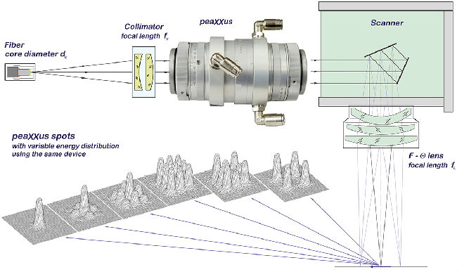 -垂直于光軸的幾個焦點中的無損光束分裂 -應用于準直器和聚焦透鏡之間 -可與掃描光學器件一起使用 -peaXXus點的可變能量分布 -操作與光束質量和尺寸無關 -對錯位不敏感 |
