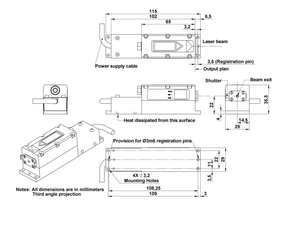 CDRH 激光頭機械圖:SNG-03E-100